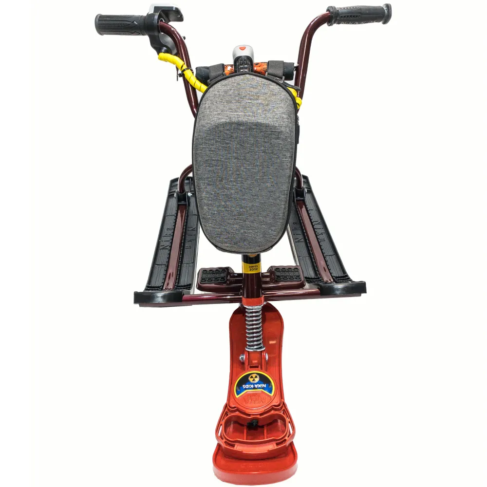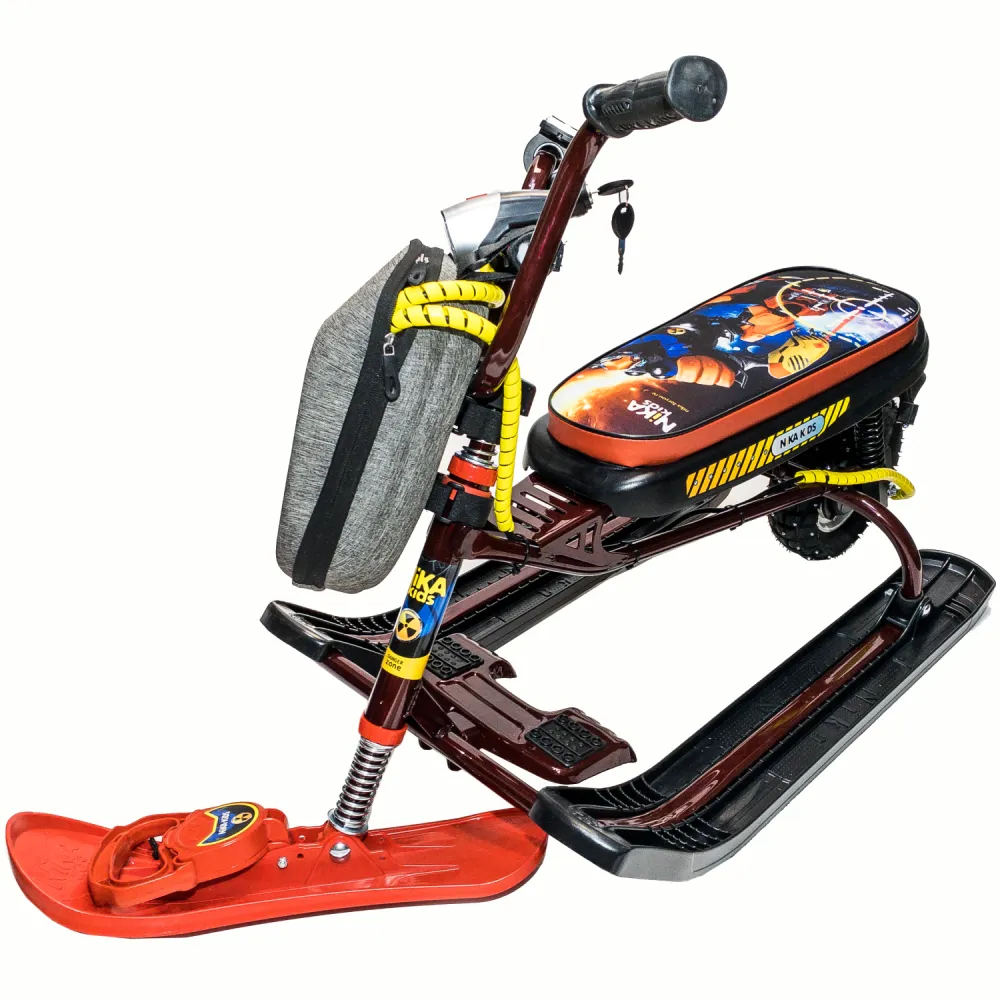 При мощности электромотора в 400 Вт способен разогнаться до 20 км/час. Зарядки батареи хватает на 2-3 часа или дистанцию до 15 км пути. При весе 14 кг электроснегокат способен выдержать нагрузку взрослого пользователя до 100 кг. Модель оснащена компактными эргономичными лыжами и фирменной тормозной системой, благодаря которым даже при максимальном разгоне производитель гарантирует высокую степень безопасности, минимальные риски заносов. Для заказа модели по разумной цене сейчас предлагаем позвонить оператору нашего интернет-магазина.