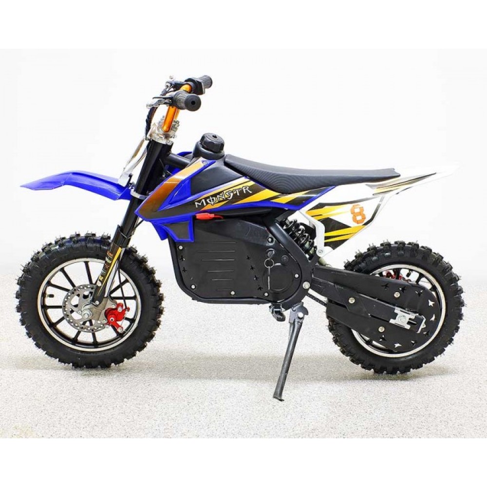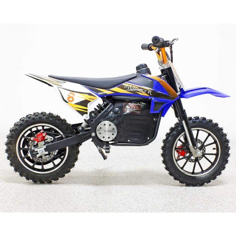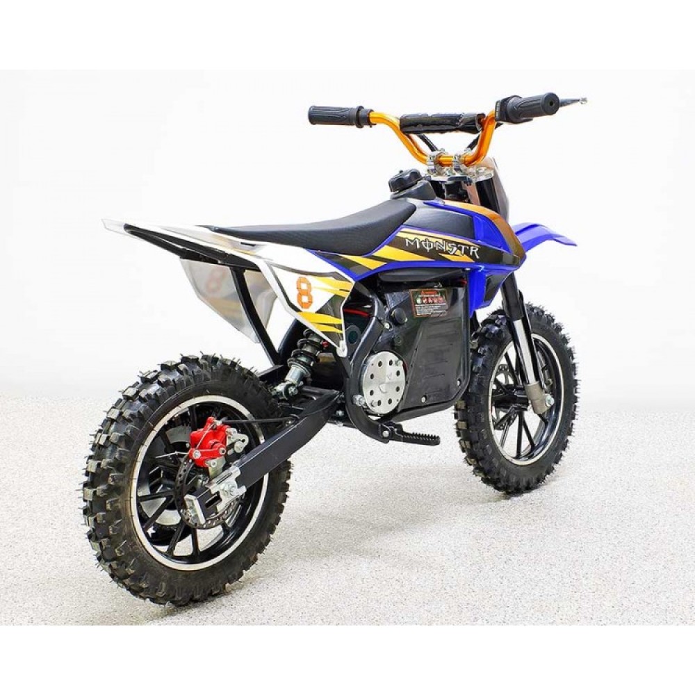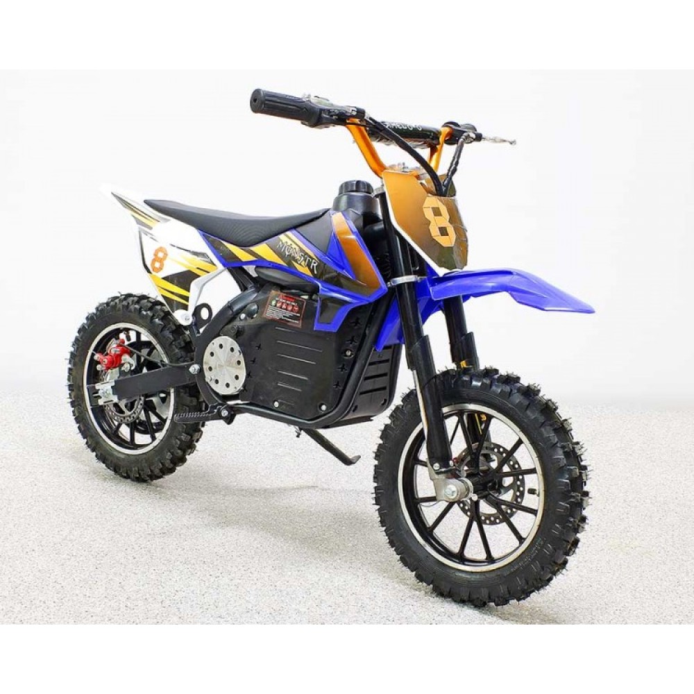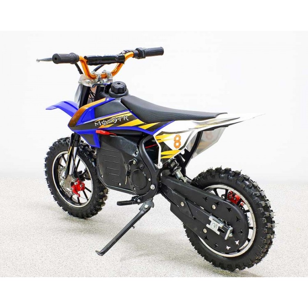 Модель изготовлена из прочного высококачественного материала. Возрастная категория электромотоцикла рассчитана на пользователей от 5 лет. Безопасность для производителя -  приоритетное направление. Модель оснащена дисковыми передними и задними тормозами, шасси с цепным типом передачи. Небольшой вес техники (38кг) позволяет быстро развивать скорость до 33 км/час. Для большей надежности и улучшения скоростных характеристик производитель обеспечил модель цепным приводом. Модель устойчива и маневренна, безопасная для начинающих райдеров. Имеет комфортное сидение анатомически правильной формы для передвижения без ощущения дискомфорта. Для удобства передвижения электромотоцикл имеет регулируемый руль.