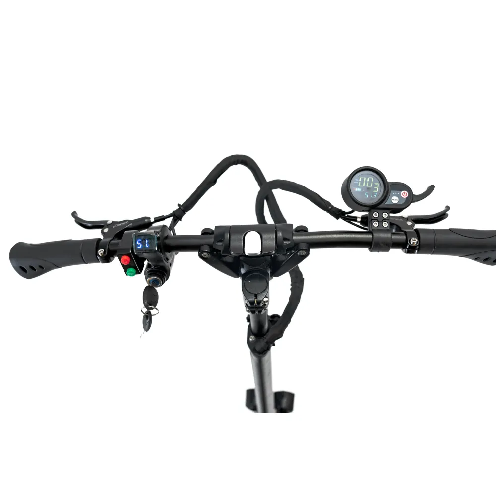 Самокат Currus R10 оборудован бортовым компьютером, впереди две фары, позволяющие передвигаться в темное время.