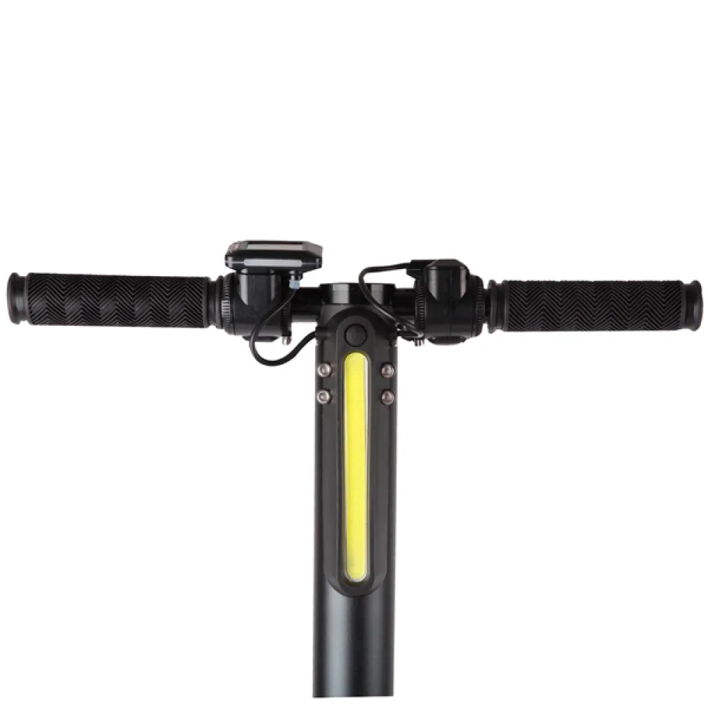 Удобная складная конструкция устройства позволяет брать его с собой в длительные поездки, на работу, а также при поездке на общественном транспорте – в сложенном виде он занимает совсем немного места. С облегченной алюминиевой рамой вес электрического самоката составляет всего 7,7 кг.