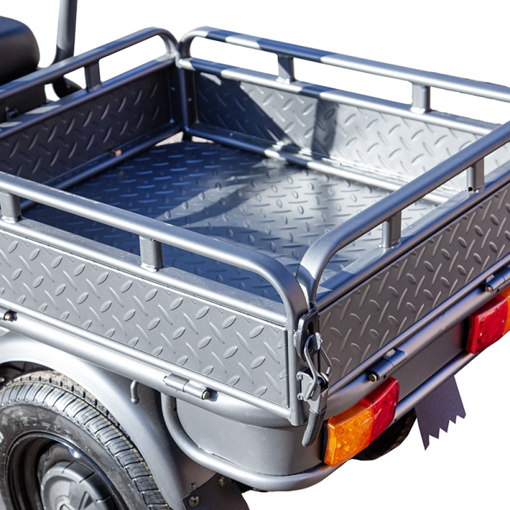 Электротрицикл оснащен мощным двигателем мощностью 1000 Вт, что обеспечивает достаточную мощность для перевозки грузов весом до 200 кг. Привод задний, что позволяет обеспечить хорошую устойчивость и маневренность при движении.