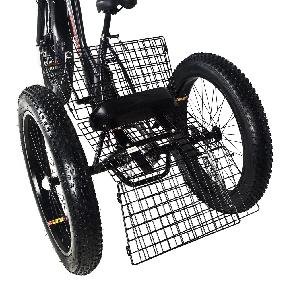 Трицикл изготовлен с учетом высоких показателей комфорта и удобства. Модель оснащена задней вместительной корзиной, оснащен 26-дюймовыми вездепроходимыми колесами. С такими параметрами несложно преодолевать препятствия и пересеченную местность. При мощности двигателя 500 Вт максимальная скорость составляет 40 км/час, запас хода -50 км.