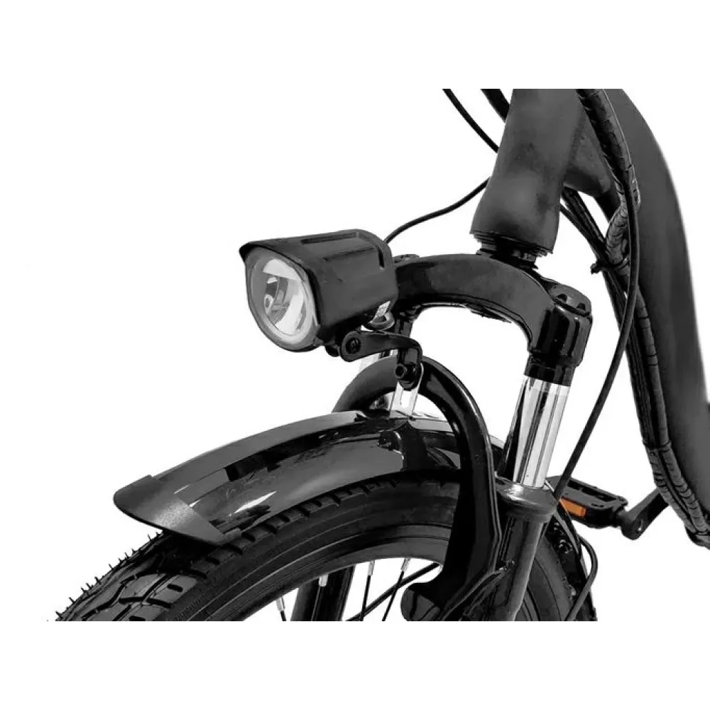 Оснащенность байка 20-дюймовыми колесами, передними амортизаторами и 7 скоростной трансмиссией делает езду качественной, плавной даже по неровностям. Со слов пользователей техники вибрация практически не слушается. Производитель предусмотрел наличие светодиодного освещения и информационного компьютера, дающих возможность безопасной эксплуатации велогибрида в вечернее время и непогоду.