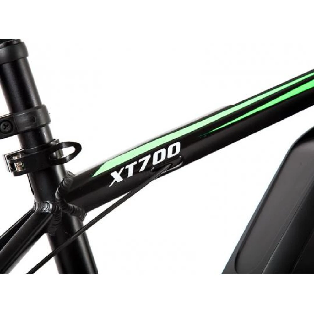 Электрический велосипед Eltreco XT-700 оборудован двигателем мощностью 350 Вт, он дает равномерное ускорение, позволяет развивать максимальную скорость 35 км/ч. Есть возможность подбирать комфортный скоростной режим у велосипеда 7 скоростей. Дисковая тормозная система дает уверенность в совершаемых маневрах. При передвижении по бездорожью амортизация передней подвески сглаживает вибрацию. Колеса диаметром 28 дюймов с протекторными покрышками улучшают проходимость байка.